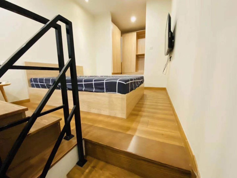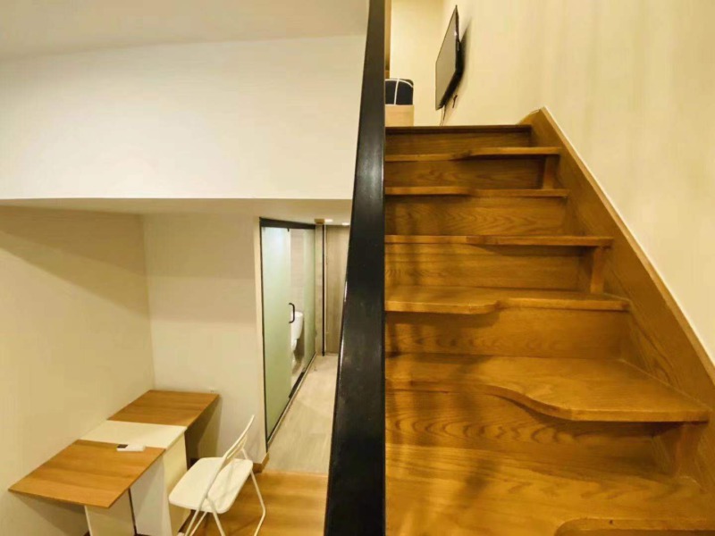 今回ご紹介するのはメゾネットタイプのお部屋で、寝室が2階部分に設けられており、1Rの間取りながら寝室とリビングのスペースを分けてご利用いただけます。