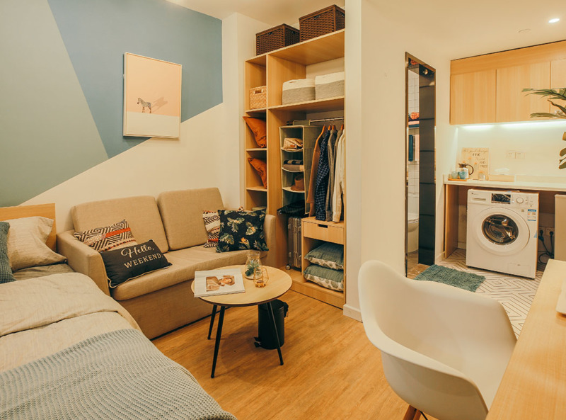 付近には、大型スーパーの『カルフール』やショッピングモール『日月光中心店広場』など買い物に便利な施設以外に、『徐家滙公園』など緑豊かな公園もあり、生活しやすい環境といえるでしょう! 今回ご紹介させていただくお部屋は、シンプルな1Rの間取りに、最新のスマート家電が備わっております。
